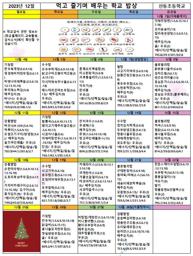 2023. 12월 학교급식 식단표 및 영양교육 자료_산동초.hwp
